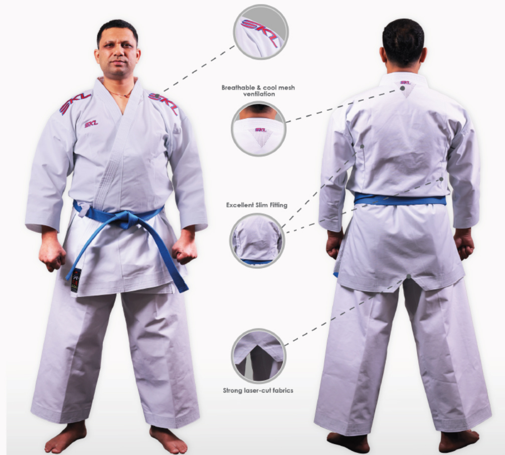 Take your martial arts journey to the next level with SKL Kata Superfit uniform, the perfect blend of performance conferred and durability with stylish build and air cooling features. Belt to which stand intense training and meet professional demands, this uniform allows unrestricted movement while standing up to the toughest challenges. Expertly crafted and meeting official standards, it’s the go to choice for Marshal artists committed to achieving their best .